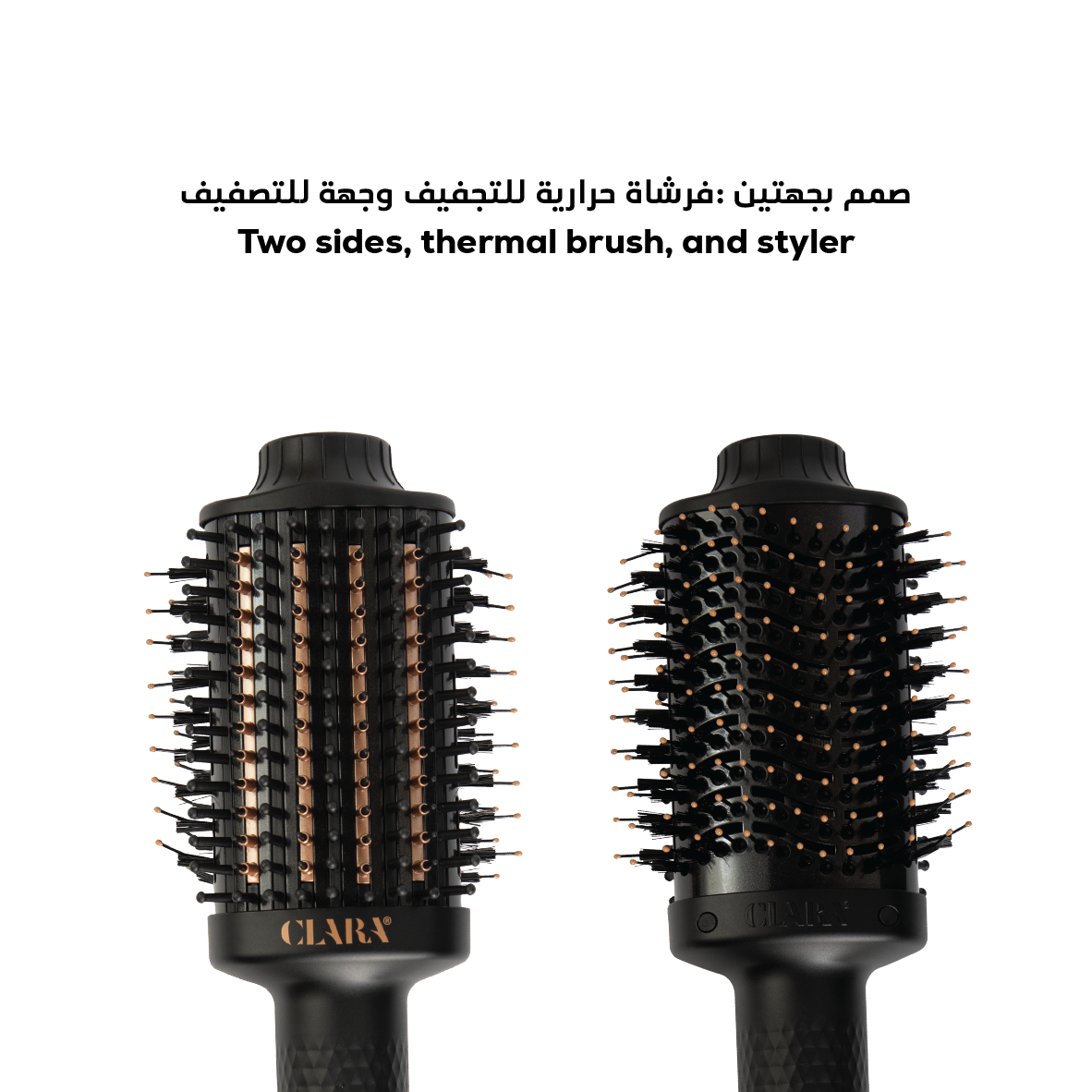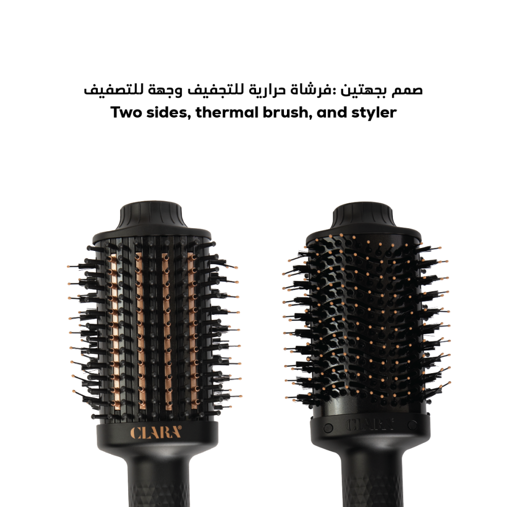 - صمم بجانبين : جانب فرشاة حرارية للتجفيف وجانب للتصفيف.