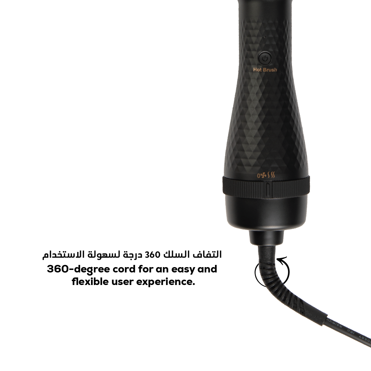 صففي وجففي بوقت قياسي مع الفرشاة المطورة متعددة الإستخدام تعمل بجانبين، لضمان مظهر شعر صحي خالٍ من العيوب، صمم الجهاز بميزة الهواء الحار والبارد لتسريع عملية التصفيف والتجفيف وإضافة كثافة ولمعان للشعر، كل ما تحتاجينه في جهاز واحد.