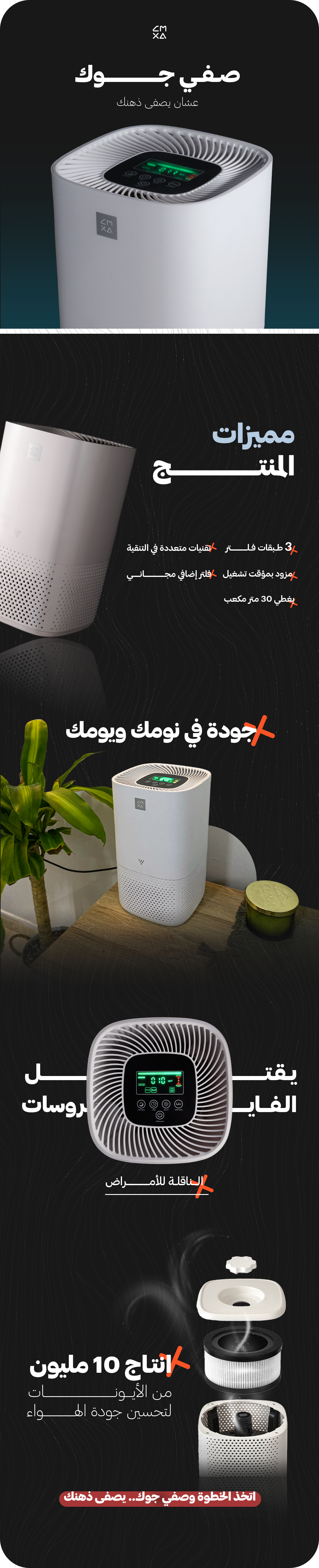 منقي الهواء من كمكسا مزود بفلتر H13 HEPA عالي الكفاءة، ليوفر لك هواءً نقيًا في منزلك بطريقة بسيطة. يقضي على الفيروسات في الجو، ويقلل من فرص الإصابة بالأمراض المنقولة بالهواء، ينتج 10 مليون من الأيونات المنعشة مما يحسن جودة النوم، ويقضي على الروائح مثل روائح الطبخ والتدخين، بتغطية 30 متر مكعب.