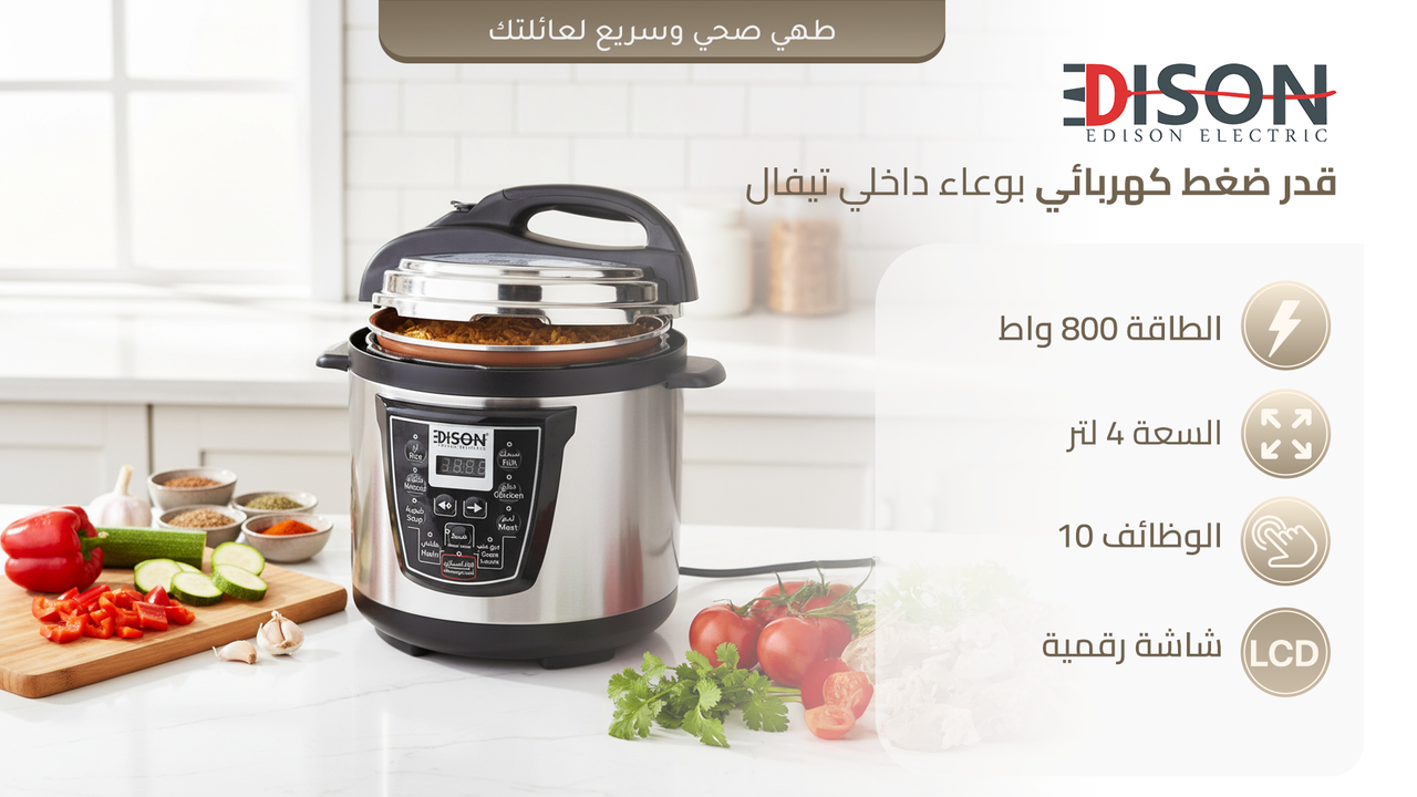 قدر ضغط كهربائي اديسون تيفال 800 واط 4 لتر - Edison Electric Tefal Pressure Cooker