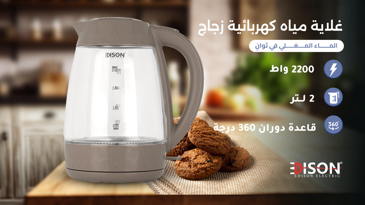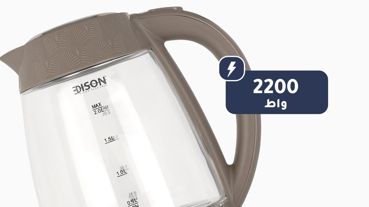 غلاية كهربائية زجاج اديسون 2200 وات 2 لتر - Glass Electric Kettle Edison