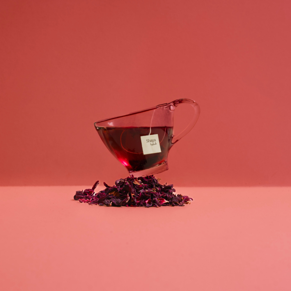 أضف كيس شاي الكركديه اللذيذ إلى كوبك المفضل.