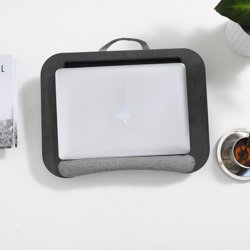 طاولة محمولة تجمع بين التصميم العملي والأناقة العصرية ،مثالية للاستخدام في المنزل أو السيارة. خفيفة الوزن مما يتيح لك استخدامها في أي مكان بكل سهولة سواء كنت بحاجة إلى سطح عمل مؤقت أو طاولة للاسترخاء،مع وسادة مبطنة وتجويف لوضع الأجهزة وجيب للتخزين