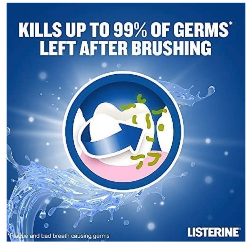 ليسترين توتال كير ذو المذاق المعتدل لحماية الأسنان يحمي ويحارب الجراثيم والبكتيريا الموجودة فوق وتحت خط اللثة لتحسين نظافة الفم.
