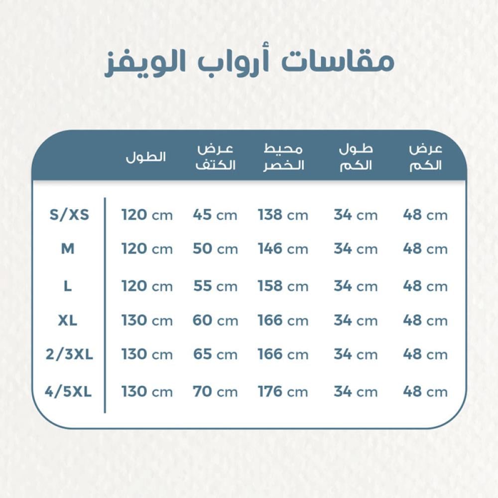يمكنك أن تجدي مقاسك المناسب بسهولة لأننا نوفر لك كافة تفاصيل المقاس،وليس فقط طوله وإنما أيضًا محيط الخصر وعرض الأكتاف وطول وعرض الكُم.