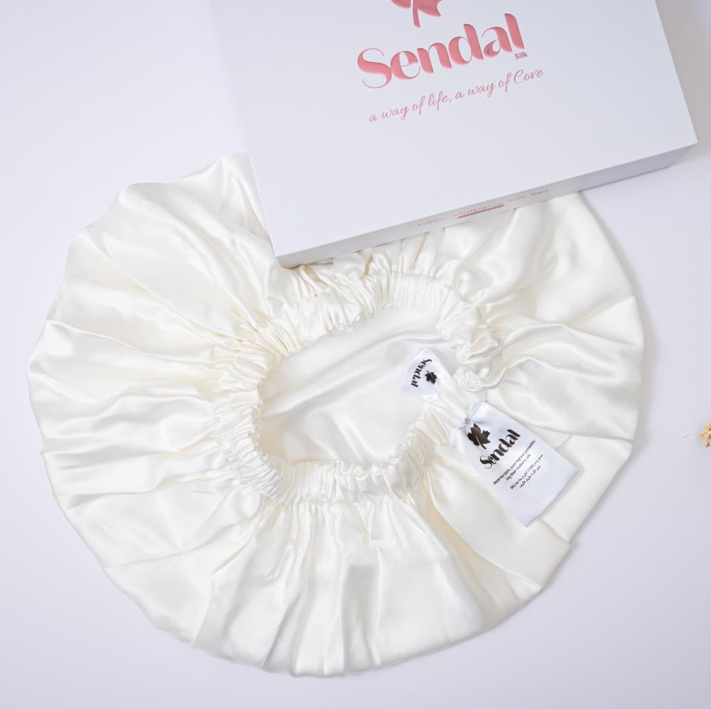 قبعة الشعر الحريرية مصممة لحماية شعرك أثناء النوم، حيث تساعد في تقليل الاحتكاك الذي قد يؤدي إلى التقصف والتشابك، وتحافظ على تسريحة شعرك لفترة أطول.