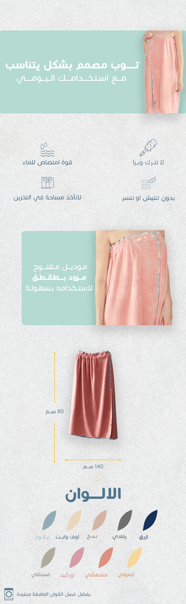 دللي نفسك بعد حمامك اليومي بروب استحمام مفتوح من ريفي ,, مصمم بشكل يتناسب مع استخدامك اليومي بموديل مفتوح مزود بطقطق لاستخدامه بسهولة وهو مصنوع من خامة كورال فليس سريعة التجفيف وناعمة الملمس.