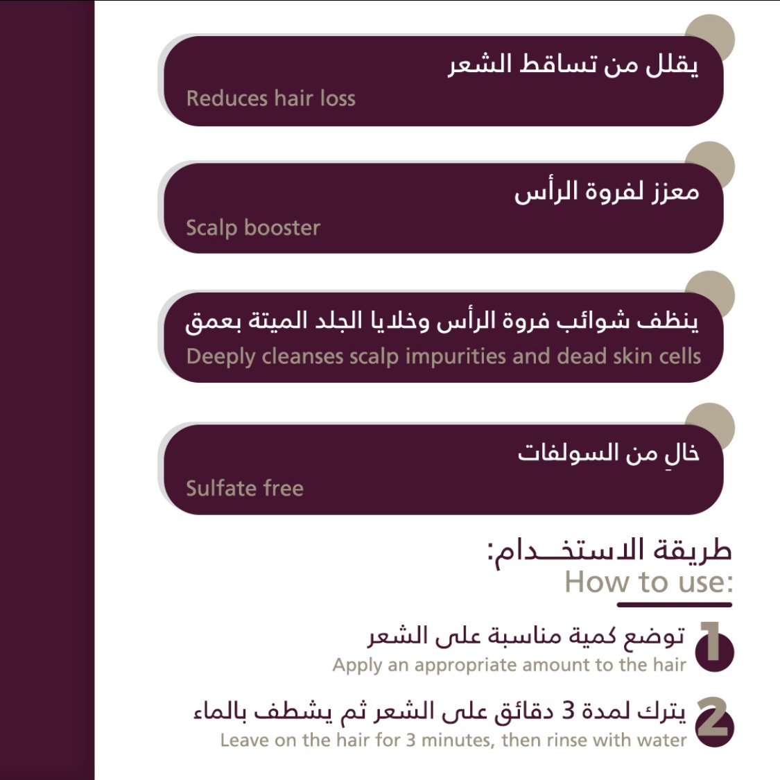 - shampoo لتحفيز فروة الرأس لتحسين الدورة الدموية وتعزيز نمو شعر جديد أكثر قوة وصحة.